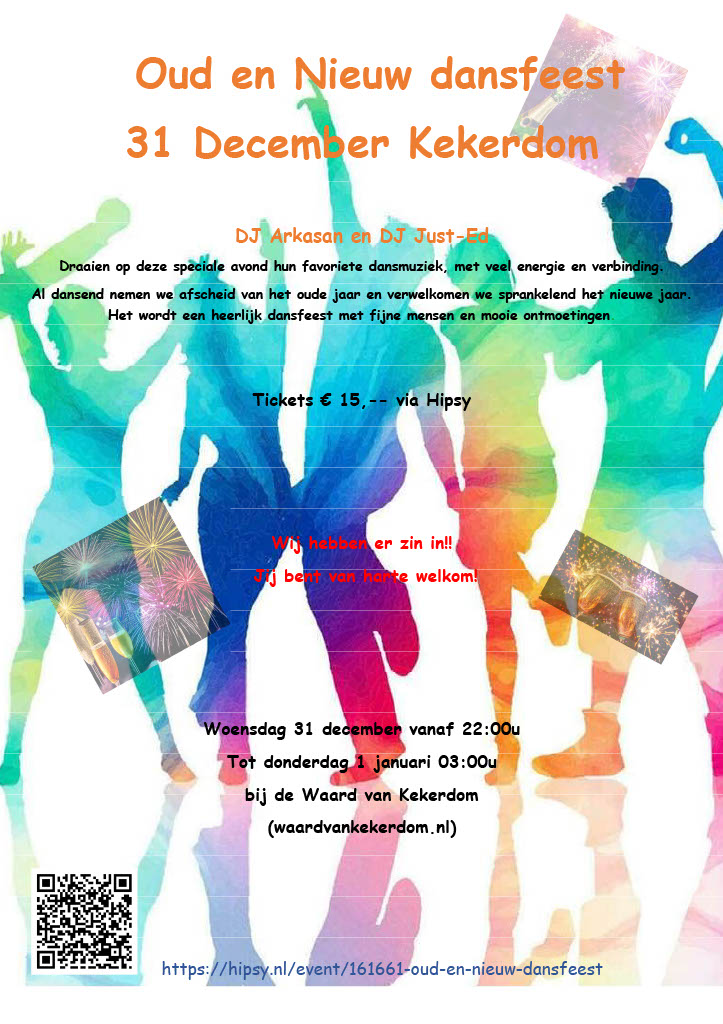 Al dansend nemen we afscheid van het oude jaar en verwelkomen we sprankelend het nieuwe jaar. Het wordt een heerlijk dansfeest met fijne mensen en mooie ontmoetingen.